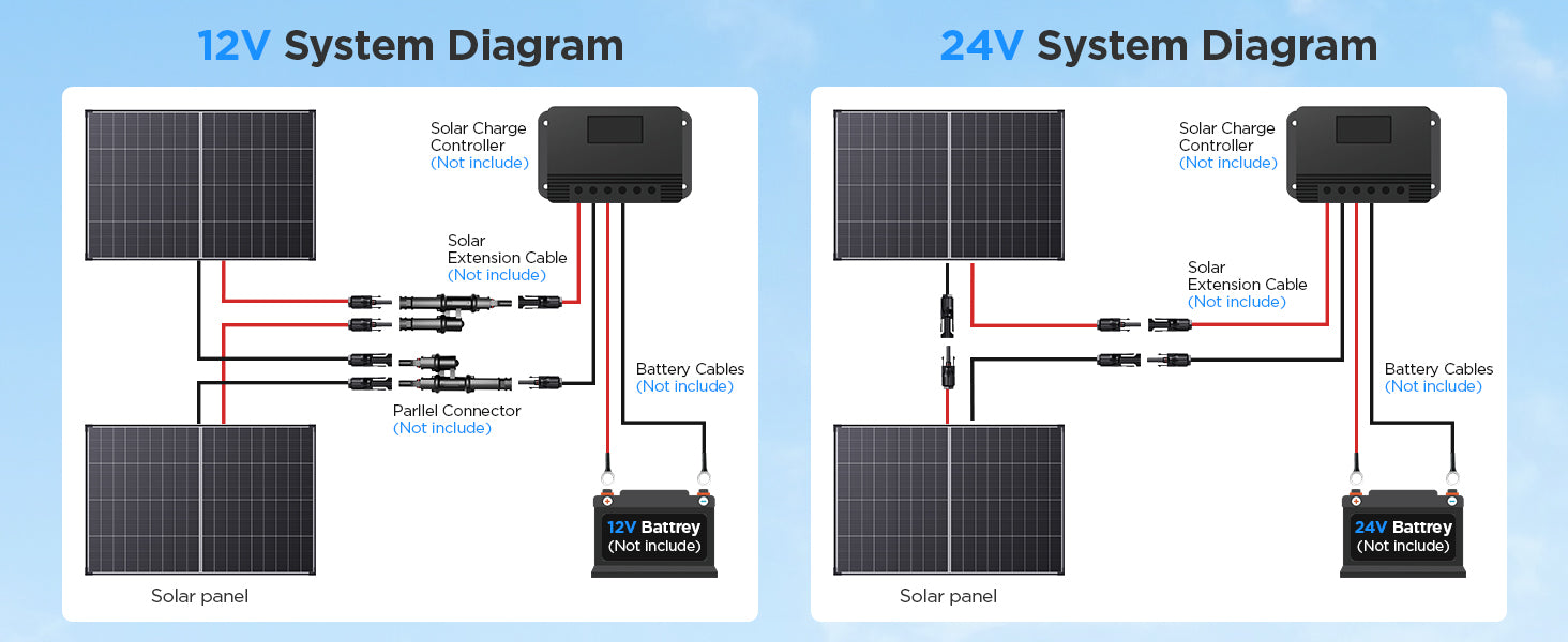 - Versatile Off-Grid Use | Perfect for residential roofs, RVs, marine systems, and ground mounts, backed by a 24-month warranty for long-term reliability.