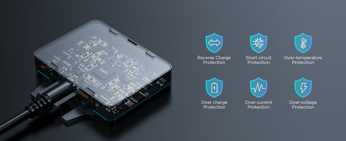 Reverse Charge Protection · Short circuit Protection · Over-temperature Protection · Over charge Protection · Over-current Protection · Over-voltage Protection