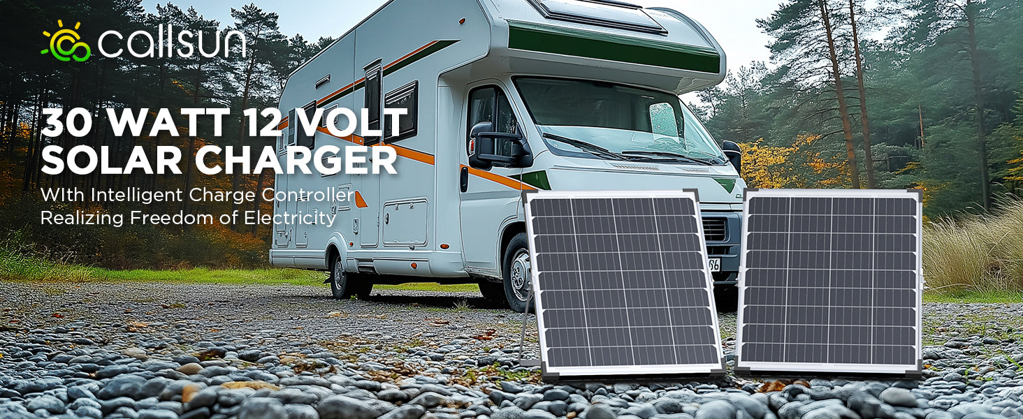 Boost your 12V batteries with Callsun 30W high-efficiency solar charger. Featuring A+ monocrystalline cells, IP68 all-weather durability, smart 3-stage charging, and wide battery compatibility, it keeps your cars, RVs, boats, and motorcycles powered and ready, anytime, anywhere.