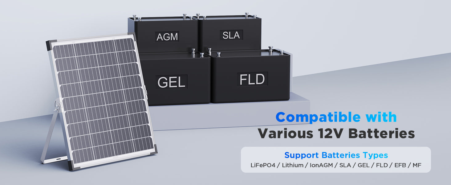 Compatible with 12V LiFePO4, Lithium Ion, AGM, SLA, GEL, FLD, EFB, MF batteries